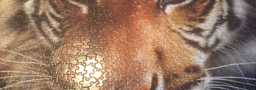Another puzzle is completed. The Tiger is Captured after 1000 pieces finally blended. I limited my involvement to about 152 pieces. I did not want to deprive Mary Anne of the thrill of locating the additional 948 small bits of cardboard. The shades of brown, gold, and white, with a tiny bit of blue, made… Continue reading Tiger Captured